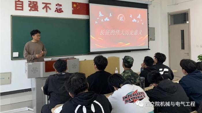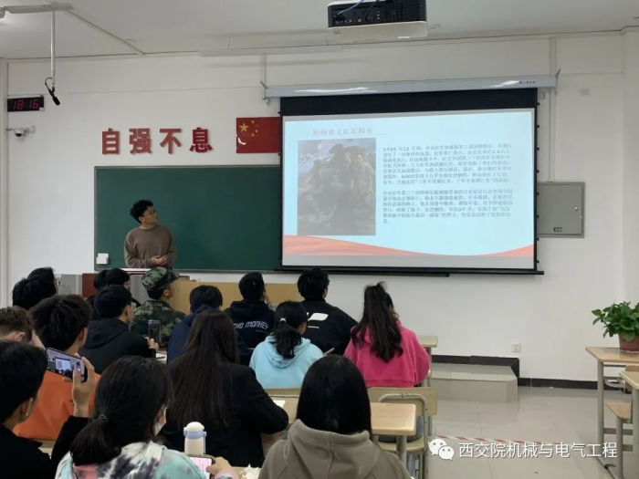 党课伊始,主讲人马昂就何为长征精神提问引出今日党课内容。同学们就提问积极发言,学习氛围十分浓厚。本次党课围绕着“长征历史简介”、“长征的伟大历史意义”、“长征精神的时代价值”三个主题展开。首先,从长征的历史中回顾长征精神的形成。长征途中,红军不仅要抵抗围追堵截的敌人——四渡赤水、巧渡金沙江、强渡大渡河、飞夺泸定桥,还要经受极端恶劣的自然环境——爬雪山、过草地。共产党人勇于自我革命,始终坚持真理、修正错误,敢于正视问题、克服缺点,勇于刮骨疗毒、去腐生肌。遵义会议开创了党对共产国际从盲从到独立思考,从逆来顺受到自作主张的转折点。第二部分介绍了何为长征精神。红军在长征途中表现出了对革命理想和事业无比的忠诚、坚定的信念,表现出了不怕牺牲、敢于胜利的无产阶级乐观主义精神,表现出了顾全大局、严守纪律、紧密团结的高尚品德。这些构成了伟大的长征精神。最后,介绍了长征精神的意义。长征是中华民族不屈不挠精神的典范,是人类历史上艰苦奋斗精神的楷模,是充满无私奉献精神的史诗。