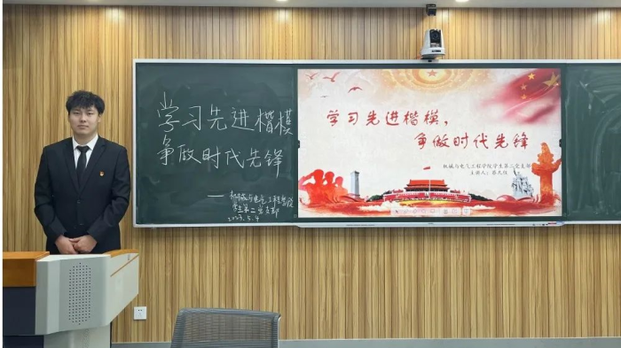 随后,蔡凡仪同学给大家普及了中国“五章一薄”和中国“六大荣誉”的具体所指,并为大家着重讲解了中国“核司令”程开甲院士,通过分享他的成长经历和工作实践,让各位积极分子深刻领会先进楷模的精神内涵和实践价值,从而引导大家在学习工作中树立正确的思想观念和价值理念,不断提高自身的综合素质和能力。