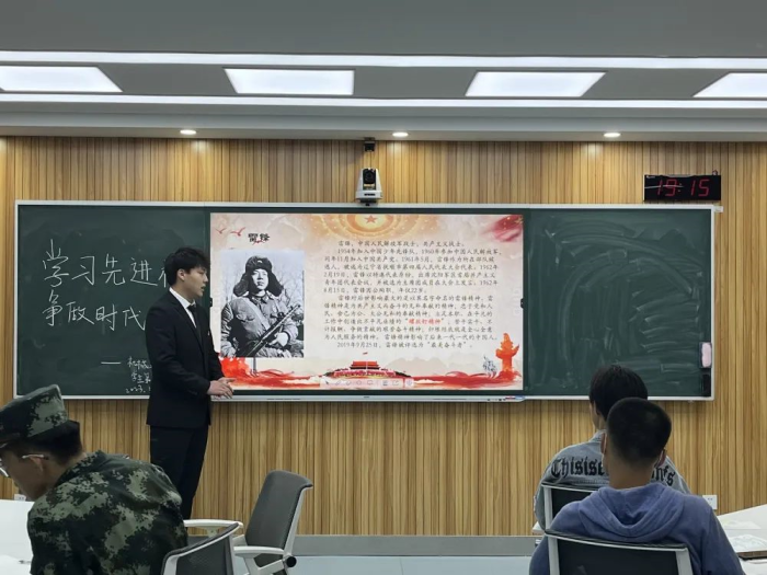 屏幕中为大家呈现出的“螺丝钉精神”雷锋、“胆道之父”黄志强、化工设计师陈俊武、“中国核潜艇之父”彭士禄、“感动中国人物”张桂梅、“最美奋斗者”张富清、“脱贫攻坚楷模”黄文秀七个人的事例让大家由衷的认识到榜样的力量是无穷的,青年大学生学习先进典型,就要从他们身上吸取养分,坚定理想信念,不忘初心、牢记使命,履职尽责、许党报国。学习他们为民服务,不计回报,不诉苦说累,学习他们细处为群众着想,大处敢于担当,难处甘于奉献。