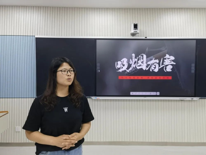 王新焕老师向同学们倡议,大家要行动起来,以此次活动为契机,做“文明、绿色、无烟”健康生活方式的宣讲者,积极倡导社会公众控烟履约,从自身做起,珍爱生命、远离烟草,为创建无烟环境、推进健康中国建设作出应有的贡献。