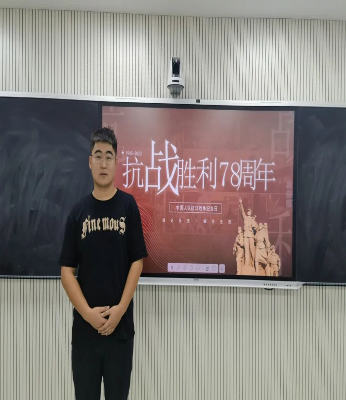 为深入学习贯彻党的二十大精神,推动党史学习教育常态化,引导全校师生回顾党的奋斗历史,深切缅怀革命先烈,激发学生爱国热情,听党话,跟党走,继往开来,传承红色基因。9月1日,我院学生第一党支部开展“纪念中国人民抗日战争胜利78周年”主题党日活动,一起回忆抗日战争那段艰苦的历史岁月,不忘耻辱、牢记历史,激励全体积极分子立足当下、奋发图强。