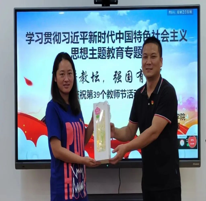 为深入学习贯彻习近平新时代中国特色社会主义思想主题教育,进一步弘扬尊师重教的社会风尚,激励广大教师爱岗敬业、无私奉献,不断增强立德树人的责任感和使命感,9月11日,我院教师第一党支部组织开展以“躬耕教耘,强国有我”为主题的教育专题会议,党委书记王拓辉、教师第一党支部书记张治国及党支部全体教师参加会议。