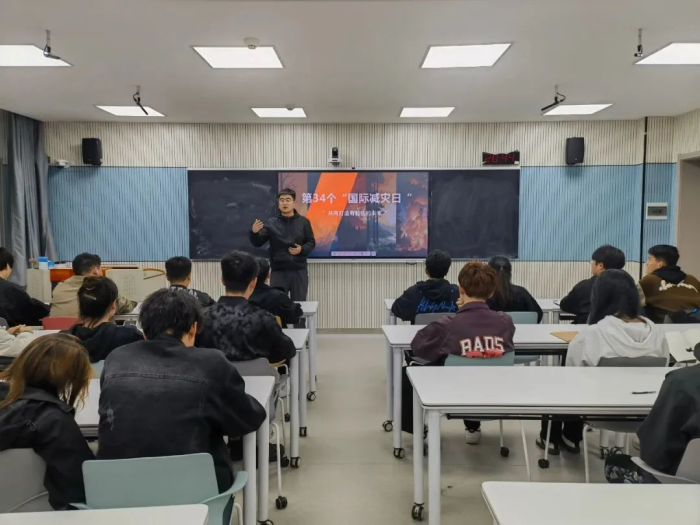 张伟通过视频观看、专题讲解等多种形式,向同学们介绍了当地震、火灾、台风等灾害来临的时候科学避险和自救的办法,提升了同学们置身于灾害中合理处置突发意外事件、减小伤亡损失的能力。他强调,在校大学生的安全防范意识较为薄弱,人身安全,校园安全,网络安全等各方面的知识都需要普及,大学校园里存在的安全隐患也不容忽视,安全教育工作需要迫切投入,同时提醒同学们在日常生活中要时刻注意防范潜在的未知隐患,做到正确应对。