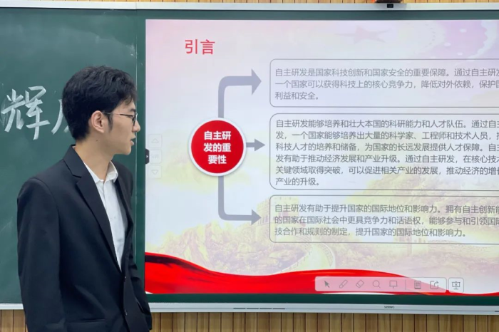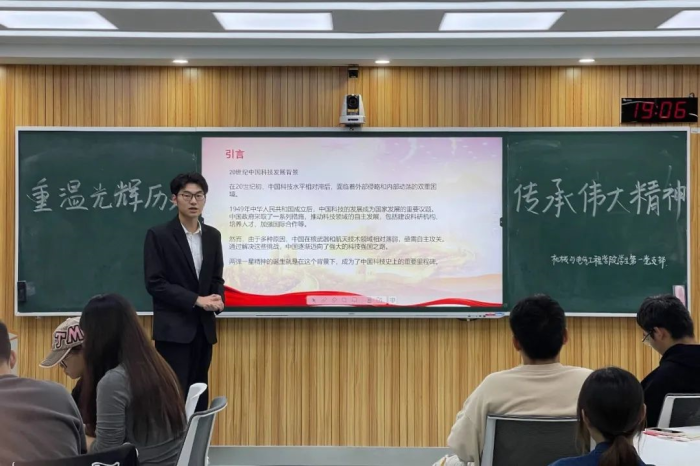 课上,郝可赞同学从三个角度阐述本次党课的深刻内涵:“两弹一星”精神的形成背景、“两弹一星”精神的实质内涵、“两弹一星”精神的传承弘扬。通过郝可赞同学的讲解,积极分子们了解到,“两弹一星”精神是几代科学家们热爱祖国、无私奉献,自立更生、艰苦奋斗、大力协助、勇于登攀的伟大实践和不朽功勋,深刻认识到研制“两弹一星”为增强我国的科技实力特别是国防实力、奠定我国在国际舞台上的重要地位作出了不可磨灭的巨大贡献。