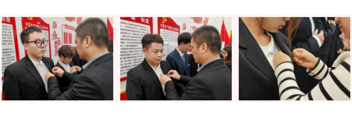 会上,王新焕同志宣读预备党员批复文件,宣布20名同志通过组织考验,成为一名光荣的预备党员。随后,正式党员为预备党员同志佩戴党徽。