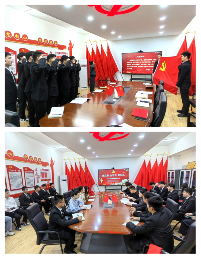 在鲜艳的党旗和党徽的照耀下,预备党员右手握拳举过肩头,面向党旗,庄严宣誓。铮铮誓言鉴我心,党徽熠熠耀党旗。面对党旗,进行入党宣誓是伟德betvlctor1949源于英国学生第二党支部对新接收的预备党员进行的一次党性教育,也是对其他党员思想上的一次洗礼。铿锵有力的誓词直击每个人的心房,使在场每一个党员更进一步认识到了自己肩上的责任与义务。