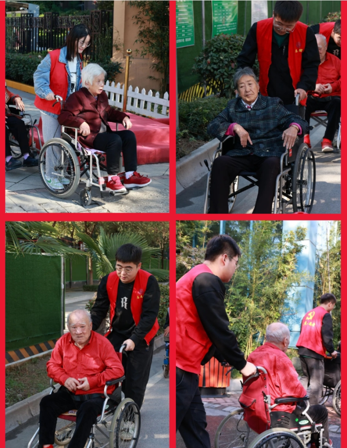 为弘扬中华民族“尊老、敬老、爱老、助老”的传统美德,进一步发扬“奉献,友爱,互助,进步”的志愿服务精神,10月21日,我院学生第一党支部联合荣华养老院举办“重阳节养老院志愿服务”活动。