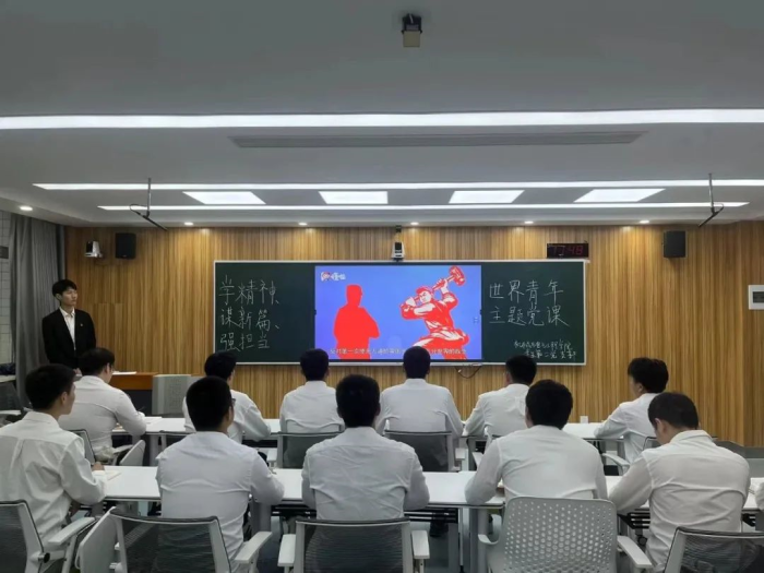 随后,他通过讲述五四青年节,带领全体党员重温“五四”精神,感受革命先辈坚定不移的爱国情怀和理想信念。通过回顾党的百年征程,坚定自身在新时代持续奋斗、建功立业的精神,共同铸就“使命担当、敢为人先、拼搏奋进、追求卓越”的青年精神。他激励每位党员青年共同奋斗,以民族复兴为初心,以满腔热血回复青春滚烫,以激情似火浇筑祖国发展的宏伟基业。传承、弘扬“五四”精神,牢记历史,不忘使命,勇挑重担,笃行不怠。