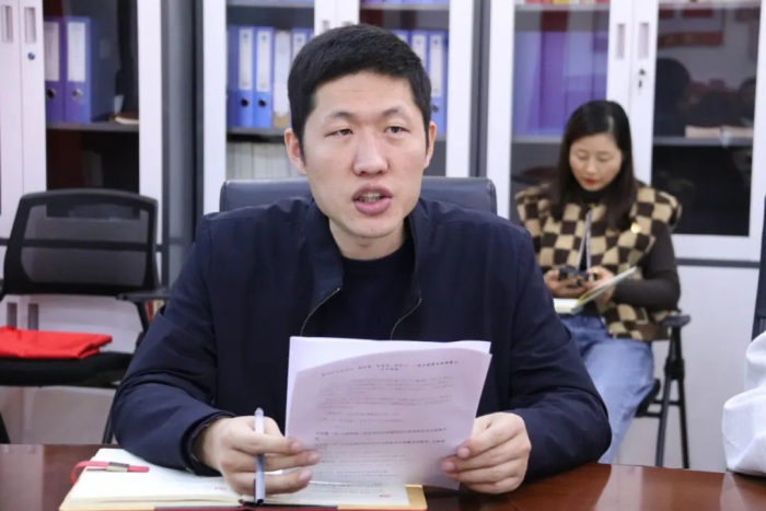 接着,贾雄伟强调,随着中国式近代化逐渐成为近年时政方面的热点、焦点,作为党员教师可以将其与自己的教学、科研工作相结合,尤其可以体现在课程思政的相关内容中。随后,他向大家强调关于开展主题党课学习活动的重要性,动员大家持续撰写学习心得,并提醒大家注意关注党员下沉任务,在学院建设贡献自己力所能及的力量。