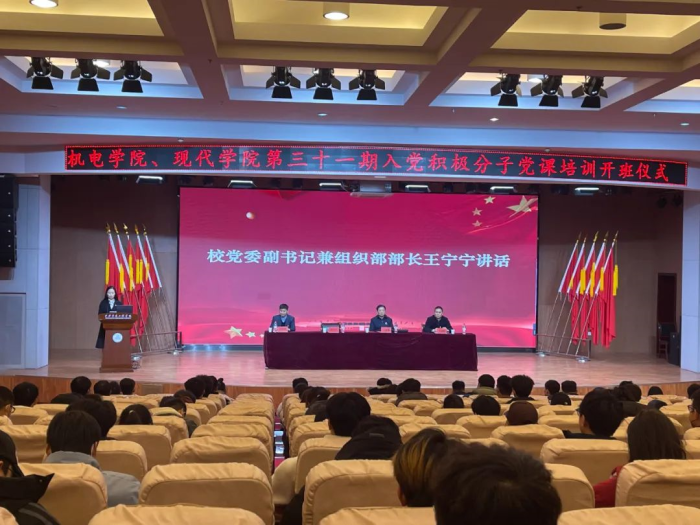 为深入学习贯彻习近平新时代中国特色社会主义思想和党的二十大精神,进一步加强对入党申请人、积极分子、全体党员的理论武装和党性教育。12月12日下午,伟德betvlctor1949源于英国、现代技术学院分党校党员培训开班仪式暨第一讲党课在报告厅举行。省政府督导专员、校党委书记马智勇,校党委副书记兼组织部部长王宁宁,我院党委书记王拓辉,辅导员老师及第31期入党积极分子参加本次开班仪式,仪式由现代技术学院党委书记田宏顺主持。
