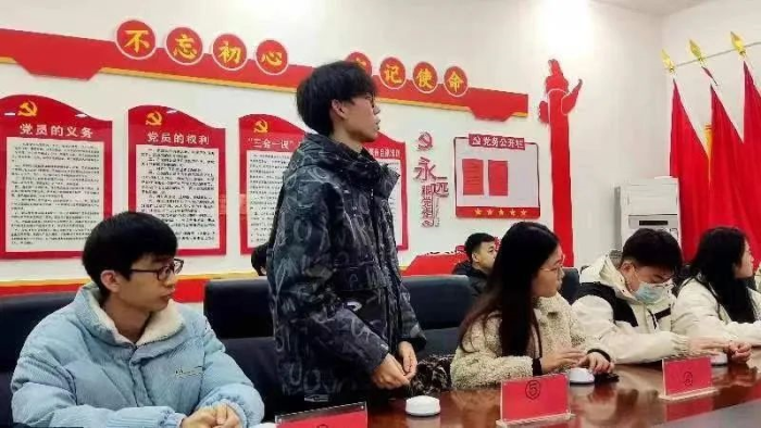 为重温中国共产党的光辉历史,更好地继承和发扬党的优良传统和优良作风,切实提高入党积极分子的理论水平,培养爱国主义精神,12月11日,我院学生第一党支部开展“重温光辉历程,传承伟大精神”党课知识竞赛决赛,复赛晋级的8位同学,学生第一党支部书记王新焕,党员导师李菲、赵泽、程子星参加此次决赛,此次比赛由阿正同学主持。