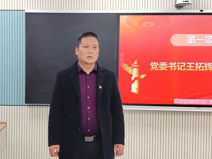 会议伊始,王拓辉做重要讲话,他表示作为一名学生党员,要积极参与各项活动、培养自身素质,提高个人能力,在工作中找准自己的定位,通过活动锻炼本领、锤炼技能,强调党员教师应发挥引导作用,引领学生在基层锻炼中寻找差距,不断完善自我,实现个人与集体的共同成长。