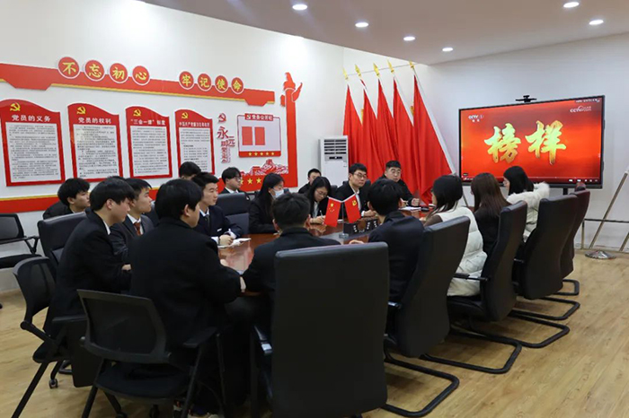 为深入学习贯彻习近平新时代中国特色社会主义思想,持续推动主题教育走深走实,教育引导广大学生党员学习榜样、争当先进,主动作为、担当有为,12月26日,我院学生第一党支部组织观看《榜样8》专题节目,书记王新焕、组织委员申茹茹、宣传委员朱媛媛引领29期全体预备党员共同学习榜样精神,汲取榜样力量,推动形成争做“榜样人物”的学习氛围。