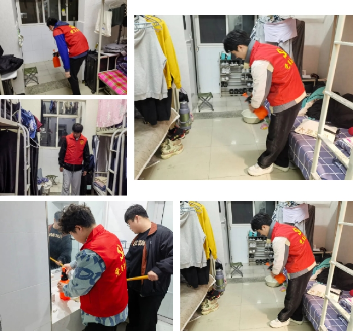 行动中,学生党员们分成若干小组,以身作则,深入学生宿舍,对公共区域进行了全面细致的清扫和整理。他们毫无怨言,尽心尽力清理了地面、墙面、门窗等各个角落,确保公共区域卫生无死角,同时积极向同学们宣讲宿舍卫生的重要性,引导大家养成良好的卫生习惯,共同维护宿舍的整洁和美观。他们不仅关注宿舍内部的卫生状况,并着重检查了宿舍周边的环境卫生。在检查过程中,积极与同学们沟通交流,了解他们在宿舍生活中遇到的困难和问题,并给予了及时的帮助和指导。
