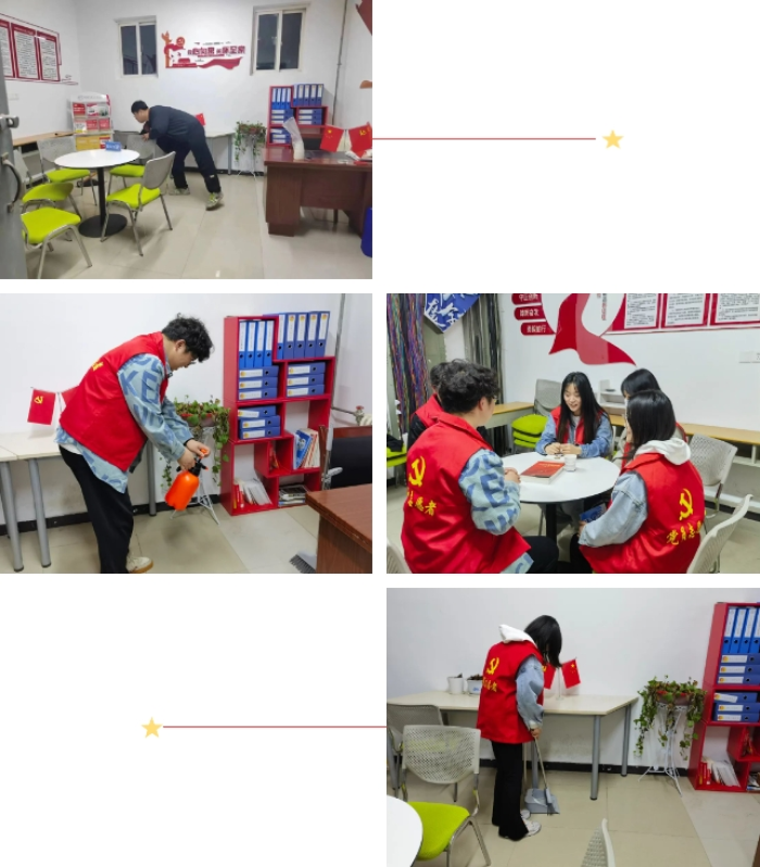 为切实发挥基层党组织的战斗堡垒和学生党员的先锋模范作用,维护宿舍环境,展现党员风采,进一步推动学院文明建设,创建干净、整洁、有序的宿舍卫生环境,展现学生党员积极向上的精神风貌,4月27日,我院学生第一党支部第29期预备党员,把学习教育同解决实际问题结合起来,践行到“我为群众办实事”的活动中去。