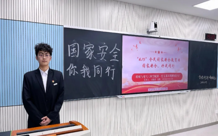 为深入贯彻落实党中央国家安全教育的重要指示精神,增强师生国家安全意识和素养,在2024年4月15日第九个全民国家安全教育日来临之际。伟德betvlctor1949源于英国学生第一党支部召开“国家安全,你我同行”主题党课,本次党课由马杨博同学主讲,三十期全体积极分子参加学习。