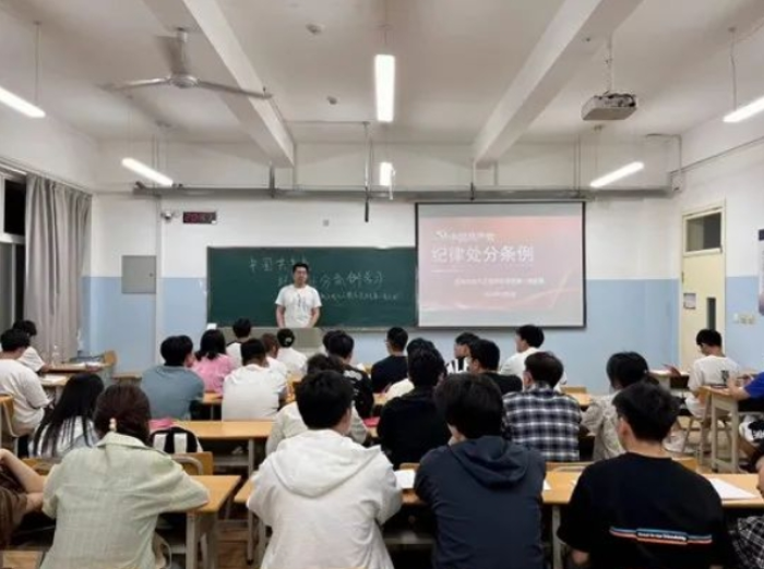 为贯彻习近平新时代中国特色社会主义思想和党的二十大精神,引导党员干部学纪、知纪、明纪、守纪,5月9日,我院学生第一党支部召开《中国共产党纪律处分条例》学习会,党支部书记王新焕、党员导师赵泽、傅培基、程子星及全体入党积极分子参加会议。