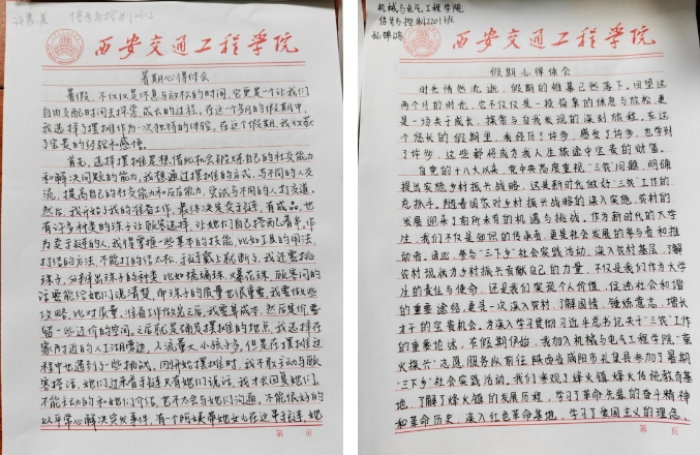 在提交的暑期心得体会中,其中许惠美、刘思佳,孙锦鸿、张洋洋等人心得体会字迹工整,内容丰富,将暑期学习到的经验总结充分。活动中,积极分子们都写到了自己在暑期中的生活细节,有的积极分子暑期在做兼职、有的积极分子暑期在家帮父母减轻家务、有的积极分子去看了看外面的世界。暑假可能是我们进行自主学习、实习或参与学术项目的时间。通过写心得体会,可以反思在这些活动中的学习成果,如学到的专业知识、技能和方法。暑假的经历,如实习、兼职或参加职业探索活动,能让我们对不同职业有更直观的了解。写心得体会有助于整理这些体验,思考自己的职业兴趣和优势,明确未来的职业方向。暑假心得体会的撰写可以成为一种情感宣泄和心理调节的方式。我们可以通过表达自己的感受和情绪,释放压力,缓解焦虑,同时也可以从积极的角度看待自己的经历,增强自信心和幸福感。心得体会可以作为一种交流的媒介,让我们与他人分享自己的暑假经历和感悟。通过与家人、朋友、同学或老师的交流,我们可以获得不同的观点和建议,拓宽自己的视野,同时也可以增进彼此之间的感情。