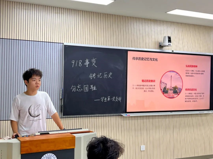 为弘扬爱国主义精神,加强爱国主义教育,激发积极分子的爱国情怀和民族使命感,9月18日,我院学生第一党支部组织积极分子们开展“铭记国耻,共筑强国梦”缅怀9.18先烈主题党课,此党课由樊凯亮,李延有主讲,全体积极分子参加此次活动。
