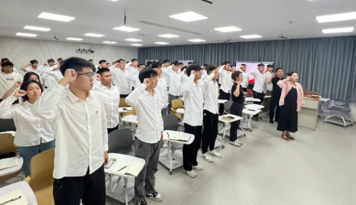 随后,组织委员李阳光老师带领全体党员和预备党员重温入党誓词,以庄严宣誓的方式铭记历史,珍惜和平,铮铮誓言响起,表达着他们对党的忠诚和为共产主义事业奋斗终身的坚定信念。