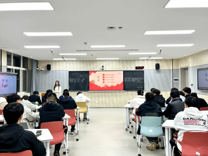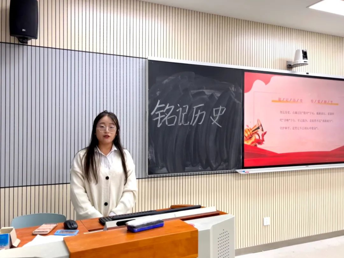 会上,庞莎莎向积极分子们讲述了上世纪国家经历的苦难与屈辱,如南京大屠杀、七七卢沟桥事变、九一八事变等。这些都是我国的屈辱史,她呼吁大家铭记,现如今的和平是先烈们用生命和鲜血换来的,同时当代青年应勿忘国耻,振兴中华,为中华民族的伟大复兴贡献力量!