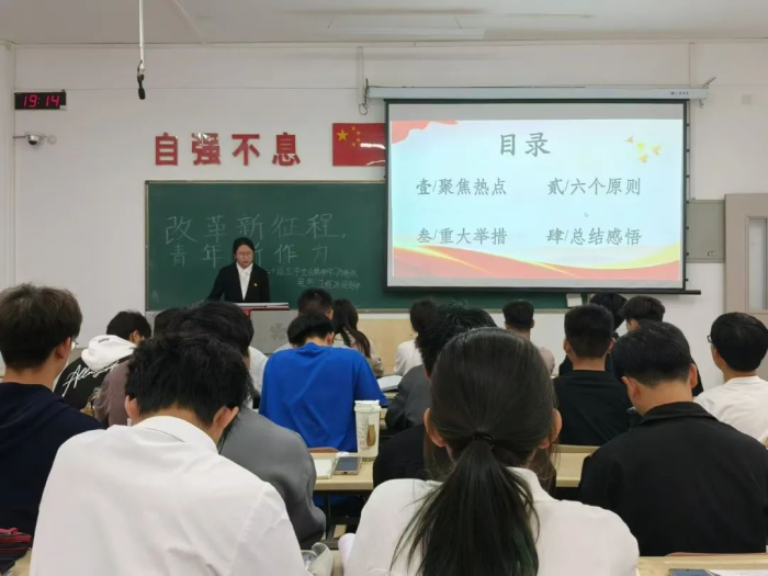 为引导青年学子深刻领悟党中央全面深化改革的坚定决心和使命担当,激励他们为实现中华民族伟大复兴的中国梦贡献青春力量,我院于10月20日举办了“学习党的二十届三中全会精神”主题团课系列活动(三)。