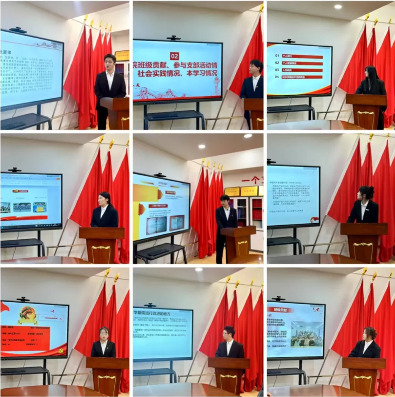 答辩环节中,拟发展对象依次上台,围绕个人简介、班级与学院贡献、支部活动参与情况、社会实践经验、本学期学习表现、入党动机、以及不足与改进计划等方面进行了详细汇报。答辩过程中,党员代表针对报告内容进行提问,从党建知识、政治觉悟等方面对拟发展对象进行了深入考察。这一过程体现了第一党支部严谨的党员选拔标准,同时激励更多同学主动向党组织靠拢。