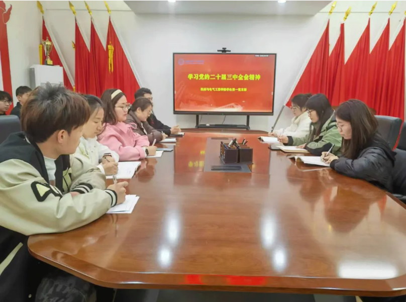 为深入学习贯彻党的二十届三中全会精神,推动学生党员将学习成果转化为实践动力,12月3日,我院学生第一党支部召开“学习党的二十届三中全会精神”专题会议。本次会议由学生第一党支部书记王新焕主持,学生第一党支部全体党员参加。