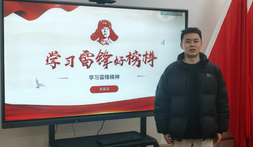 党课以雷锋的生平事迹为切入点,张展浩同学深入讲解了雷锋在工作和生活中展现出的优秀品质,帮助同学们更全面地认识这位伟大的共产主义战士。他深刻阐释了雷锋精神的核心——“全心全意为人民服务”,并特别强调了助人为乐这一高尚品质在当代社会的重要价值。