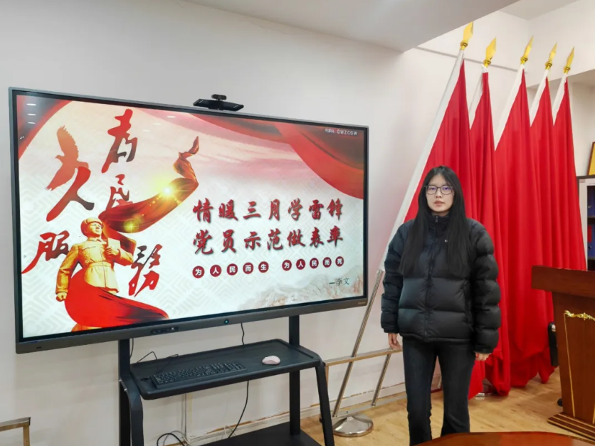 随后,李文同学剖析了雷锋精神的深刻内涵。雷锋精神是中华民族传统美德在新时代的传承与升华,蕴含着艰苦奋斗、敬业精神和无私奉献等核心价值观。她强调,“钉子”精神、“螺丝钉”精神以及创新精神是雷锋精神的重要组成部分。这些精神内涵,照亮了积极分子们前进的道路。