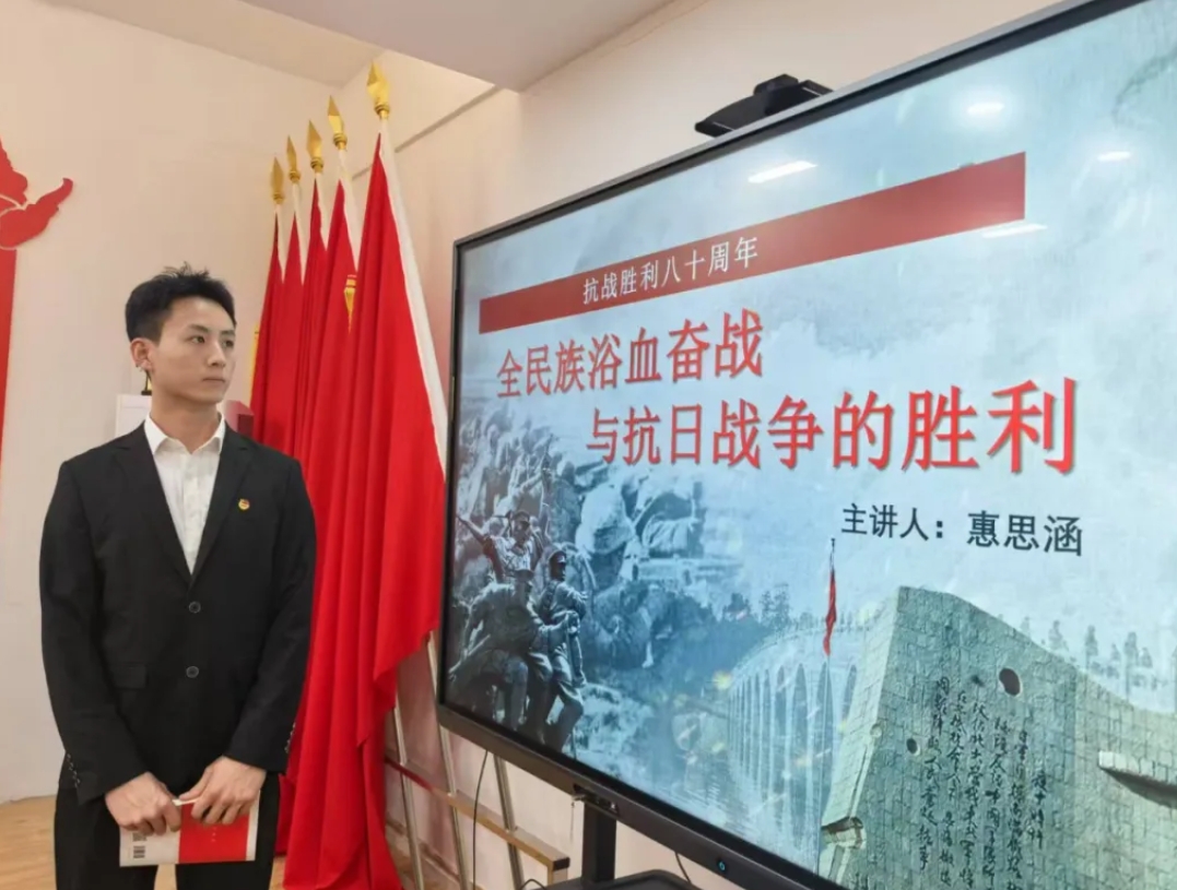 为铭记抗战历史、赓续红色血脉,进一步厚植青年学子的家国情怀与使命担当,5月22日,我院学生第二党支部开展“传承抗战精神 汲取奋进力量”主题党课。本次党课由第33期入党积极分子代表惠思涵同学主讲,支部全体发展对象积极参加学习。
