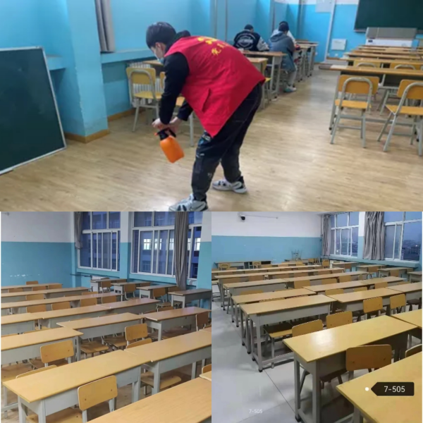 为了有效控制疫情的传播,保障学生生活环境健康安全,学生们为学院各个宿舍进行了消毒工作。学生们严格按照疫情防控消杀标准进行规范消毒。楼里每个宿舍的门角、地面,以及楼道进行了大范围的喷晒消毒液动作。筑牢抗疫安全防线。同时在消毒过程中,学生们也提醒各个宿舍一定要多痛分,按时清理垃圾,避免滋生细菌。