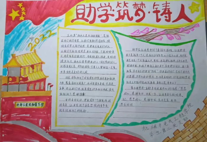为进一步做好学生资助政策宣传工作,大力推进精准资助,努力构建全员、全过程、全方位资助育人格局,提升资助育人实效,帮助所有的学生了解国家资助政策,4月14日,该院学生第二党支部开展“资助育人,心怀感恩”主题手抄报宣传活动,同学们结合国家资助政策,用画笔表达对国家资助政策的无限感恩之情,进一步深化资助育人内涵,使该院学生深入了解资助知识,全面掌握资助政策,进一步推动该校资助工作的顺利开展。