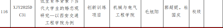为深入贯彻落实《“十四五”教育发展规划》《国务院办公 厅关于进一步支持大学生创新创业的指导意见》《国务院办公厅 关于深化高等学校创新创业教育改革的实施意见》等文件要求,进一步深化新发展阶段高校创新教育改革,根据陕西省教育厅 办公室〔2025〕4 号文件《关于做好2025 年大学生创新训练计 划项目立项申报和结题验收工作的通知》的有关要求,我校申 报了2025 年度大学生创新训练计划项目,经专家评审,共立项125 项,拟推荐国家级项目11 项,省级立项74 项,校级立项 40 项。