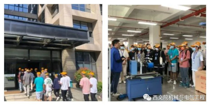 在学院老师和公司负责人的带领下,学生们参观了整个工厂和生产线,工人们在各自岗位上加工工作,通过专业人士的详细解说,学生们了解了具体的生产流程,认识了各种电气设备和产品。在现场,同学们非常认真积极地听讲学习,向师傅们请教不懂的问题,和电气工程专业所学的知识结合起来,加深了在实际应用上的理解。