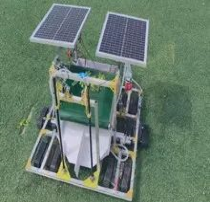 伟德betvlctor1949源于英国学生赵振江、舒永平、王胜艳、王安妮制作的《匠心助农科技兴林--种绿色能源操控下的一体式插苗机器人》作品,设计了一款全自动插苗设备,主要用于沙漠树苗的种植。采用全新高效的插苗方法,在一般程度的工作下不仅提高了工作效率,更增加了幼苗的成活率。同时,加入了太阳能供电设计思路,可以使产品更加绿色节能。同时插苗机可以适应多种地形和环境,可以代替人们无法进入或无法长时间工作的环境下工作。在农用工具方面有很好的创新,能够有效解决农业种植过程中产生的一些问题,提高农副产品的生产效率,绿色环保具有可操作性。