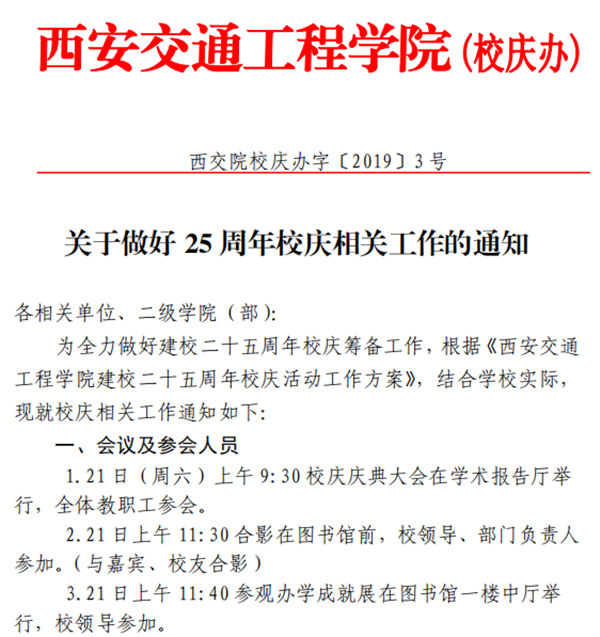关于做好25周年校庆相关工作的通知