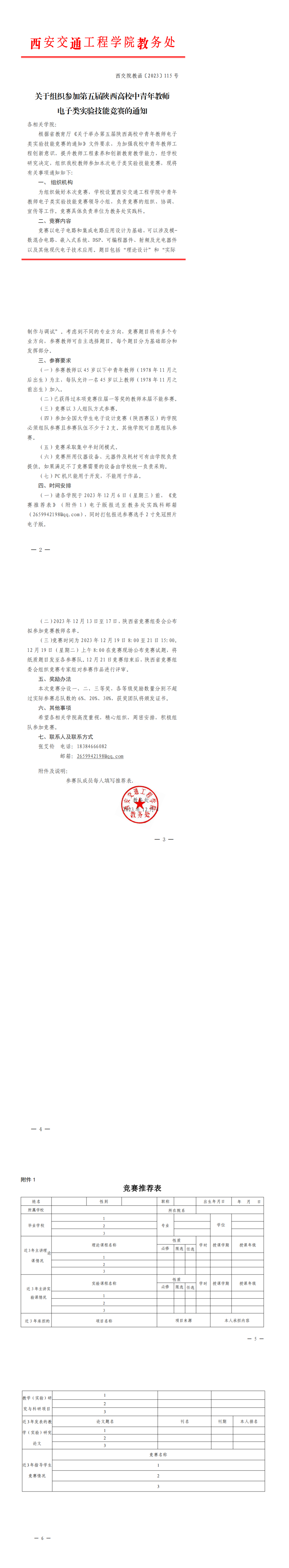 关于组织参加第五届陕西高校中青年教师 电子类实验技能竞赛的通知