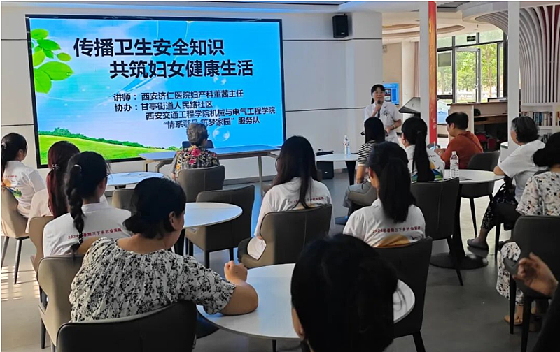 为增强社区管辖范围内群众的公共卫生意识,提升居民文明健康素养,增强个人防护意识,保障居民身体健康,促进居民健康素养。我院暑期三下乡活动中的“情系鄠邑,筑梦家园”社区实践服务团队联合甘亭街道人民路社区以及济仁医院共同开展“传播卫生安全知识,共筑妇女健康生活”健康知识主题讲座。