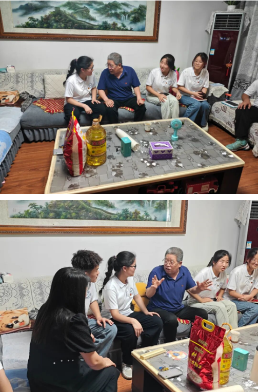 实践队成员与老战士们亲切交谈,详细询问了他们的生活和身体情况,认真聆听了老人讲述当年的军旅经历。谈起昔日的军队生活,他两眼放光,他说,即使艰难困苦他也从未觉得后悔,并直言,这是他一生中最宝贵的时光。在部队里,他不仅养成了健康的生活习惯,还获得了真挚的战友情。退伍后,他扎根基层工作几十年,熟悉当地的风土民情,也向大家讲述了许多工作时的故事。分别之际,团队成员们对老兵致以真诚的问候,和真挚的祝福,并合影留念。