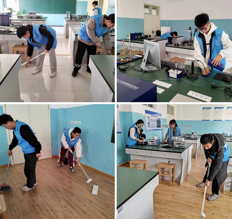 活动中,志愿者们分工明确,各司其职、有序地展开行动,利用清洁工具清理实验室器械的垃圾死角和桌面的纸屑、实验废纸等杂物,用抹布擦拭实验器械以及重新整理并摆放位置,使得实验室环境更加干净整洁。