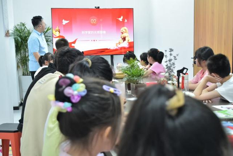 随后,志愿者用孩子们易于理解的语言,总结了“两弹一星”精神的核心内涵:热爱祖国、无私奉献——钱学森毅然放弃国外优渥条件回国,彰显坚定信念;自力更生、艰苦奋斗——邓稼先在荒漠戈壁隐姓埋名、白手起家,展现执着精神;大力协同、勇于登攀——无数科研工作者团结协作,攻克关键技术难题,彰显担当。