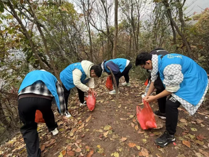 清晨白雾弥漫,志愿者们精神抖擞,身穿统一服装,沿着蜿蜒的山路前行。他们手持工具,不放过任何垃圾死角。在山坡陡峭区域,垃圾常藏于荆棘或石缝中,志愿者们不畏困难,徒手清理,汗水浸透衣衫,但志愿者们始终坚持不懈。一袋袋清理出的垃圾是他们努力的见证,也展现了青年学子守护自然的责任与担当。