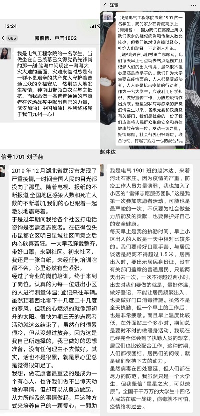 面对疫情,电气工程学院的学生挺身而出,在相关部门的思想动员下,组织发动的基础上,积极响应国家和政府对疫情防控的号召;他们在全国各地的疫情防控一线,在自己小小的岗位上,用自己的实际行动来回应学院的教导,展现着电气学子应有的风采。