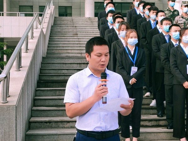 升旗仪式结束后,王拓辉书记在国旗下发表讲话,他指出在全国疫情尚未完全好转的当下,同学们不畏艰辛,从全国各地赶到学校学习,要始终牢记自己的初心和使命,对自己的学校生活有好的规划,静下心来认真学习,提升自己的学历。书记希望,全体师生能共同努力,共同进步,严格按照学校规章制度文明用餐,科学防范,用最好的实际行动证明自己。
