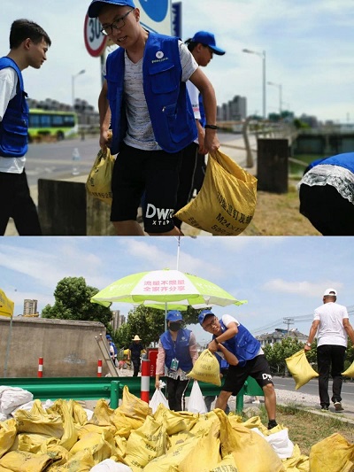 汛情就是命令,防汛就是责任。电气工程学院学生党员鲍缘杰同志在看到家乡巢湖受灾后,刚刚放暑假回家的他,主动联系当地一个叫做“白玉兰志愿者”的组织,自告奋勇到一线堤坝上参加抗洪抢险工作,积极响应党组织号召,发挥党组织战斗堡垒作用和党员先锋模范作用,积极投身到防汛救灾工作中去。他说:“作为党员,此时此刻必须冲锋在前,一名党员就是一面旗帜,要让党旗在一线闪光!”