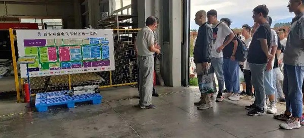 进入西安奇盛电气有限公司的第一天,公司安排专业人员带领我院学生进行入厂安全教育学习,授课人员全部是该厂的资深职工,他们结合自身经验向同学们传递安全理念、讲授安全规范,并通过观看生产现场急救视频、生产安全事故警示教育片,让学生始终树立安全意识,掌握入厂上岗的这堂基础必修课。在工作人员的带领下,我院学生依次学习高压配电柜、低压配电柜面板图纸的识读,配电柜、电源柜、设备专用柜制作工艺,机加工设备的认知与操作,低压电动工具设备的使用和维护等。学习过程中,工作人员对学生提出的问题都给予耐心的解答,同学们在整个实习过程中收获良多。