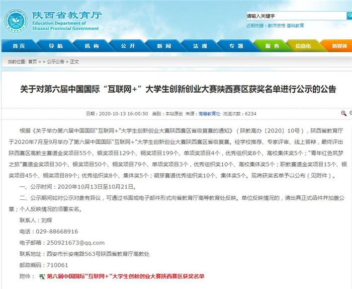 9月12日—13日,第六届中国国际“互联网+”大赛陕西赛区复赛在西安举行。本次省级复赛采取线上线下相结合的方式进行,陕西赛区省级复赛由陕西省教育厅主办。