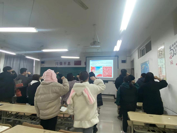 观看影片结束后,该院学生积极表达自己的观后感想,作为当代大学生,在坚定理想信念的基础上加强基础知识学习,加强自身的知识储备,练真本领,为党和国家的发展做贡献,做感恩人、知恩人和报恩人,在班长的带领下,班级同学宣言:“为‘两个一百年’奋斗目标贡献自己的青春力量。”