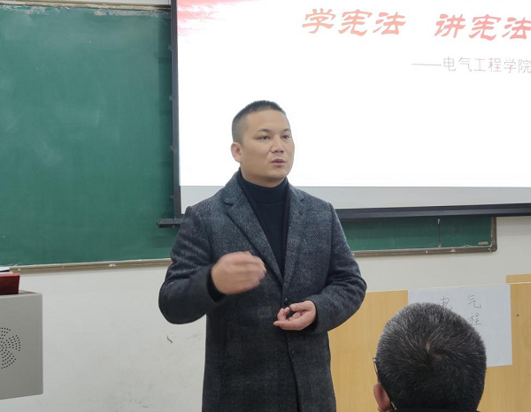 12月2日下午,电气工程学院团总支于B-109教室开展“宪法在我心中”主题演讲比赛。本次活动旨在为在校大学生普及宪法知识,营造学习宪法、尊崇宪法的浓厚法治氛围。该院党总支书记王拓辉莅临活动现场。活动由电气工程2001班李康同学主持。